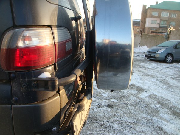 Изнутри убрал бачок омыватиля и положил 2 листа метала 4мм с шайбой так как цельный лист не лезет,колесо 31. Да можно попробовать примострячить крепеж канистры вместо номера.