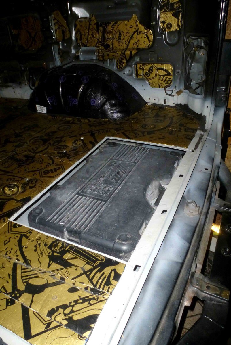 Пол сзади, пострадавший от лютой питерской соли, заменен листами холоднокатанной стали 08пс6 толщиной 2,5 мм. Сзади в пол вварены два поддона для мелочей.