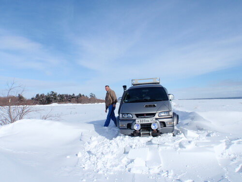 Я по свеженакиданному снегу по такой глубине кроме 4 ВД вообще ничего не включал-это перемёт, снег очень плотный, на фото видно как я вышел из машины и стою на поверхности. http://rutube.ru/tracks/2908644.html?v=48acc6fcbad65514c410667ad9ae233d Это так просто-ручей под снегом обьезжали. Был бы на "мудзиле" вообще бы шиковал а эта 295-ая режет снег до твёрдого