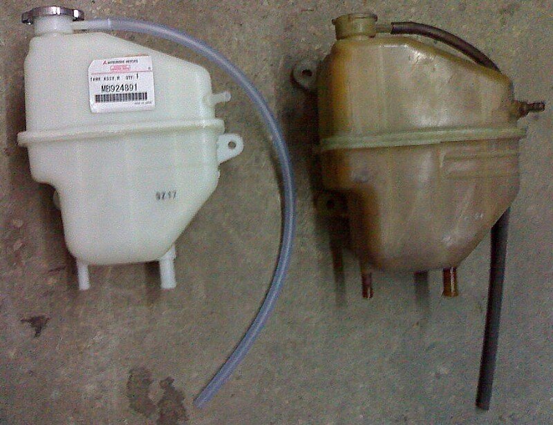 Поменял сегодня расширёк. На фото новый и старый. Совет тем, кто будет менять: При постановке на место нового бачка, гораздо удобнее сначала надеть на него нижние шланги и поставить хомуты, отогнув бачок на место, где стоят батарейки, а затем прикручивать его болтами, нежели сначала прикрутить бачок, а потом иметь секас со шланчиками. Заодно упрощается следующий (возможно) демонтаж: открутил бачок, отогнул его в сторону и снимай шланчеги. Кстати, на старом бачке стоит пароотводный носик металлический - делал сам, отстоял 3 года, держит. Бачок менял по причине трещинки во впадинке и конченой пробки. На новом бачке отлично видно уровень ОЖ через стенку.