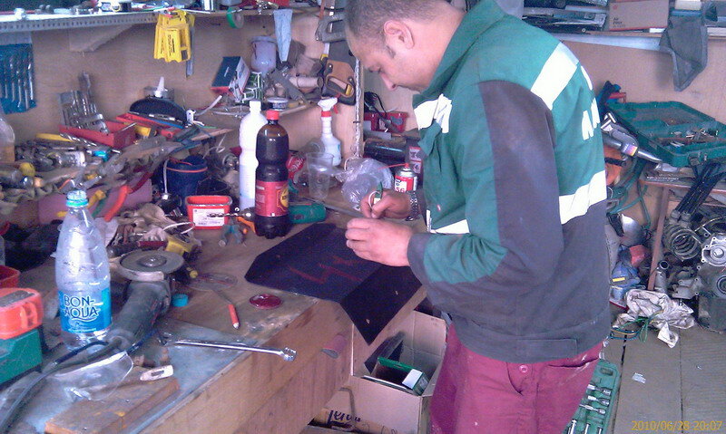 18. В общем я передумал убивать Ростислава Он седня умничка и красавчик мне здорово помог! Сначала он приварил мне уголки для крепления новых туманок: Затем вырезал, выгнул, подогнал и покрасил дополнительную защиту: Но на этом его тонкая душа не успокоилась и он сделал удивительной красоты надпись "4 х 4" красной краской на защите: Затем одарил совершенно незнакомого ему джипера пружинами, правда сказал что я ему теперь должен! В общем, Рост - спасибо большое!!!