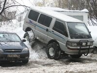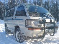Рассказываю... Давно была мечта лифтануть и вклячить большие катки. А тут еще коррозия по аркам. Вот и решил совместить полезное с приятным, тем более, как раз наткнулся на форуме на то, как это делал Леха. Проштудировал тему, посмотрел у кого что и решил тоже заморочиться. Связался с Лехой, он сделал проставки под шаровые. Далее, в один день загнал машину на работу (автосервис), предварительно купив швеллер 100-ку. Времени было начало второго по полудню. На работе какие-то уголки валялись - вварил их в качестве усилителя в швеллер. Почему-то, каким-то непонятным чутьем 2 швеллера сделал чуть длиннее. Видимо, т.к. у меня Л300, то еслть отличие. У меня лонжерон, а соответственно, и подркмник изогнуты. Т.е. получилось, что заднее крепление подрамника горизонтально, а переднее - под незначительным углом, вследствии которого, сместилась ось крепления, причем, ровно на 20 мм! Об этом я писал выше и фото прилагал. На изготовление проставок под балку убил пол-дня. Больше всего вымотало сверлить отверстия в швеллерах, ведь работая у официального дилера, инструмента почти нет, т.к. цитирую политику дилеров "у нас не мастерская, а сервис. Сломавшийся узел не ремонтируем, а меняем". Еще на складе не оказалось тормозных шлангов, пришлось бежать к ближайшему магазину и купить какие-то от Ауди. Время подходило к вечеру, а домой оч хотелось уехать на машине. Нашел какую-то трубу, которая внутренним диаметром оказалась чуть больше, чем рулевая тяга. сделал вертикальный распил по всей длинне трубы, плавно в тисках ее обжал до соответствия диаметров. Сделал еще раз распил (там же); распилил тягу пополам. Развернул рулевую рейку, чтоб не было угла между рейкой и рулевой тягой. Воткнул трубку по месту, капнул сваркой; снял получившуюся тягу и обварил ее сначала по кругу, а затем, для надежности, по продольному разрезу, который был заведомо шире необходимого. Тем самым, я увеличил площадь соединения рулевой трубки с рулевой тягой. При монтаже проставок убрал передние амортики (задних уже более года нет) Проставки ДВС решил не прикручивать к балке опоры, а приварить. Прикрутил проставки к подушкам ДВС и стал соединять с балкой. На удивление, все почти соответствовало посадочным местам. Разница в несколько мм. подкорректировал и обварил. Под радиатор сделал из листа стали 2 крепления. Время было начало одиннадцатого ночи, пора выдвигаться домой. Первое ощущение - СУПЕР! Это неописуемо, но попробую. Съезжаю с подъемника, ощущение, что сидишь в кабине КАМАЗа. Высоко! А ощущение усиливает тот факт, что морда задрана, а жопа осталась там же... Едешь - звезды рассматриваешь, а не дорогу Выруливаю к воротам и давлю на тормоз... Нет, я их предварительно прокачал, вопрос не в этом. Все помнят ощущения при покатушках на американских горках, когда после затяжного подъема тележка переваливается через первый перевал и со свистом несется вниз. Вот было нечто похожее! При нажатии на тормоз, передок плавно пошел вниз. Сложилось обманчивое ощущение, что машина клюнула на пол-метра! Следующее испытание... Привык, что обычно дверь открыл и на заднице, как с горки, съехал, естественно, пролетев какое-то расстояние. А тут лететь-то стало на 10 см больше... С непривычки чуть ногу не подвихнул, но ощущение полета понравилось. И вот, я поехал домой... Сравнимо с прогулкой на корабле! Высокая посадка кабины создава