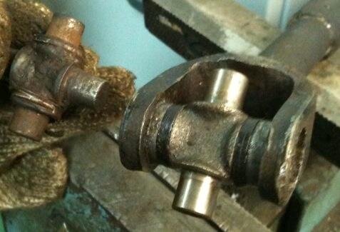 Купил машину, был люфт в рулевом упарвлении, причем, достаточно сильный (около 30 градусов). Как-то руки не доходили устранить (2 года) и вот, накануне кризиса решился. Выяснилось - люфт в крестовине, которая стоит между рулевым редуктором и тягой, идущей к рулевой рейке. Отдельно не детализируется, только с тягой. До кризиса стоила 3200. Сейчас в "Авторифе" попросили 6500. Купил рем комплект от ИЖа (попался на глаза в магазине), определив на глаз, что похож по размерам, да и 265р не жалко. Как в дальнейшем показала практика, можно было бы купить вообще за 65р от УАЗа или ВАЗа, думаю, тоже бы подошли, т.к. визуально тоже одинаковые. Демонтировал свою крестовину, и ОПА! Наша по диаметру 15мм, а отечественные - 16. Взял сверло, проточил - сидит, как родная!