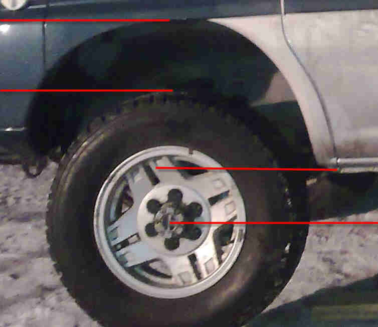 Поставил я колесо 245/70-16 с вылетом 0, вылезает за край арки на 1-2 см, резина очень близко проходит от края арки при повороте, пришлось даже брызговик открутить, на заднем колесе места еще много, а на переднем так себе . В общем что то не хочется мне такой вылет.. Буду думать как на родной диск 31-ю ставить, а там по немногу диски искать нужные..