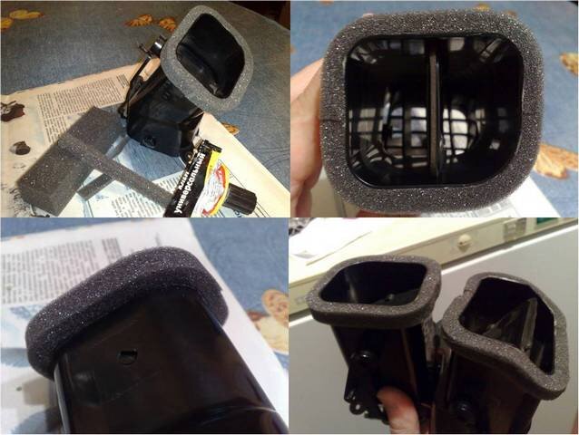 Ну и дальнейшее восстановление поролонового уплотнителя. Прикинув размеры по остаткам от старого поролона вырезал полоски и наклеил на универсальный момент. До этого пробовал ввиде эксперимента наклеить на тонкий 2-х сторонний скоч. Итог на следующий день поролон стал в разных местах отваливаться. На моменте склеенные детали продержал 3 дня без установки, проверил держиться значительно крепче чем на скотче. Кстати удачно пригодился завалявшийся кусок серого поролона в упаковочной коробке, кажется от видеокарты или ещё какой-то компьютерной приблуды)))