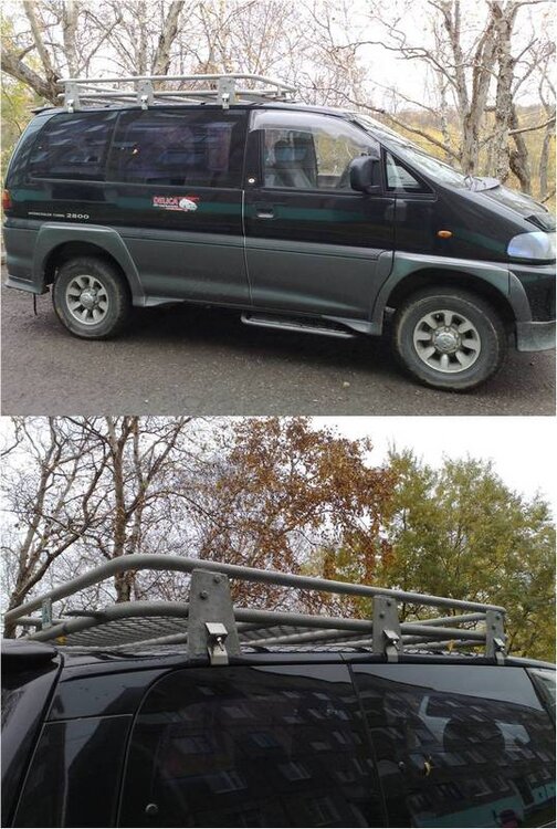 Приветствую! Я такой вот багажник яповский приобрёл. Весь люминевый, 6 стоек, крепкий сцуко!!! Есть штатные уши под крепление 2-х задних противотумнок и спереди "люстры" на 4 фары. Жаль чутка коротковат, не на всю крышу, но всё-равно, доволен..))) Следущий шаг - лесенка.