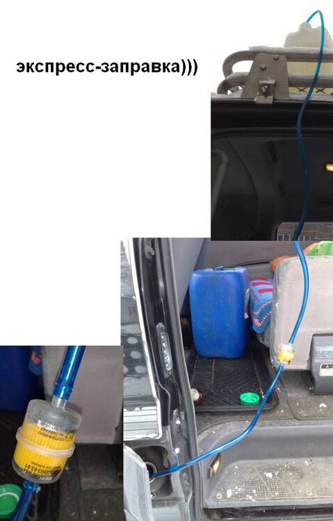 Беру соляру на заправке в канки, потом заливаю в бак таким придуманным способом. Вариант экспресс-заправки Сегодня опробовал. Класс 20-25 минут и канка 20 л слилась. Причём топливо сразу проходит тончайшую очистку через бумажный фильтр (несмотря на то что саляра заправская). Вот и посмотрю через сколько канок либо литров топлива бумажный бензиновый фильтрик засрёться. Любая воронка отдыхает и по цене и по качеству очистки. (Былоб только время).