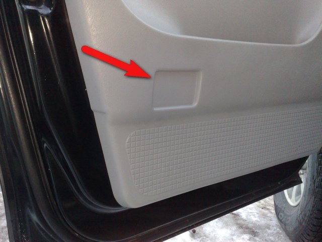 21. У меня подсветки в дверях нет, подозреваю, что вот это место, отмечено на фото стрелкой, в другой комплектации, должно было быть занято плафоном с лампой. Можно ли туда врезать самому штатный светильник? Может у кого был опыт. Что то в форуме не нашёл. Или лучше, как тут в теме сделали диоды в пороги.