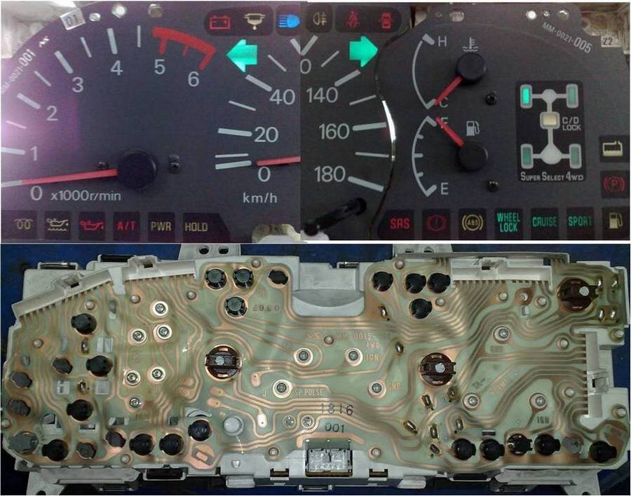 13. Вот снимал недельку назад приборную панель для замены сгоревших ламп. Нижнее изображение соответственно применять в перевёрнутом отношении к верхнему изображению.