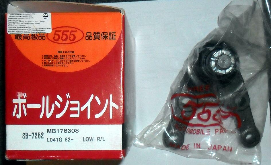 vol Опубликовано 30 января, 2011 Автор Жалоба Опубликовано 30 января, 2011 http://ap66.ru/uploadedFiles/eshopimages/icons/139x104/image002(6).jpgДетали рулевой и подвески 555(Япония ,настоящая):Тяги рулевые: 1.Булка/Кирпич 4WD MR151971/ MR455426/ MB501017 – 555 SR-7321 – 950р. 2.Булка 2WD MR151970 : – 555 SR-7760 – 450р. -AVANTECH ARE0501 - 300р. 3.Кирпич 2WD : - MB532971 /MR210221 – 555 SR-7310 – 580р.Наконечники рулевые (с заглушками под шприцмасленки): 1.Булка MR162710 – 555 SE-7761(=7331) –850р. 2.Кирпич MB527650 – 555 SE-7311 – 600р. -AVANTECH ATE0505 - 3.Кубик/Паджеро 1: - наружные CTR CEM-9 (паджеро 1) - 400р./шт. или CTR CEKH-19 (галлопер) - 400р./шт. - внутренние CTR CEM-10 (паджеро 1) - 450р./шт. Шаровые опоры: 1.Булка /Кирпич 4WD/2WD, верхние MR241623/ MR178817/ MB527349/ MB527349: – 555 SB-7761(старый номер SB-7311)- 1300р. - Lemforder (Германия-Корея) - 1185201 -950р. -AVANTECH (Корея) ABJ0502,с тавотницей и болтами -800р. -Nipparts J4885001, с тавотницей -550р. - CTR (корея) CBM13 - 800р. - Hyundai Starex 544174A000, оригинал - 1400р. 2.Булка 2WD, нижние: - MR162699- 555 SB-7762 - 3. Булка 4WD нижние,со шприцмасленками (подходят от Паджеро): - правая 555 SB-7722R -1700р. - левая 555 SB-7722L -1700р. -AVANTECH (Корея) ABJ0506L/R - 1050р./шт. -CTR (Корея) CBM-23R/L -1250р./шт. 4.Кирпич 4WD нижние, со шприцмасленками: - правая MB527352 - 555 SB-7322R – 1700р. - левая MB527351 - 555 SB-7322L - 1700р. - AVANTECH (Корея) ABJ0507L/R - 5.Кубик 4WD (L035G, L037G,L038G V/W): - верхние SB-7153 - 600р. - нижние SB-7252 - 900р.Стойки стабилизатора (линки): 1.Булка передние : - MR267873 – 555 SL-7760 -600р. Avantech ASL0504 - -Линки передние от Старекса 4WD 54830-4A803 (оригинал), такой же длины как родные от булки (т.е. длинее дубликатов), подойдут для лифта 2"- нет таких уже. Под этим номером идут короткие! -линки для лифта 2"- передние от Nissan CLN-29 - 600р./шт 2.Булка 4WD задние MR267875- 555 SL-7765 - 475р. Avantech ASL0502 (полный к-т с шайбами и резинками) - 400р. 3.Булка набор заднего линка (втулки, шайбы, гайка) MB185476 (оригинал) – 550р. (набор на один линк) 4.Кирпич P25W/ P35W передние линки (наборные) MB598097/ MB912655 – 10x60мм : - Japan Parts(Италия) RU-509 - 220р./шт.- Blue Print (Великобритания) ADC48543 -300р./шт. 5.Кубик 4WD передние линки (наборные) MB185477- BLUEPRINT ADC48544 (полный к-т) -250р.х2шт =500р. 6.Центральные стойки переднего стаба на кирпич /кубик MB109712 (оригинал)- 800./шт Распродажа! 6.Набор центральных стоек переднего стабилизатора (втулки, шайбы, гайка) кирпич P25W/ P35W , MB598327 (оригинал) - 400р./ наборВтулки стабилизатора: 1. Булка передние: -MR151285 (оригинал) - 32мм -300р./шт. -MR150095 (оригинал) – 31мм- 300р./шт. 2.Булка задние: - MB338594/MR267684 (оригинал) – 23мм - 300р./шт. - MR319499 (оригинал) – 24мм - 300р./шт. - MR267685 (оригинал) – 25мм – 350р./шт. 3.Кирпич передние: - MB518801– 24мм (1986.04.1 - 1988.07.3) P25W – HANSE (Германия) hr891060 –100р./шт. - MB573810 (оригинал)– 26мм (1988.08.1 - 1999.06.3) P25W – 200р./шт. - MB672091 (оригинал) -26,5мм P35W все – 350р./шт. 4.Кирпич задние - MB809437 – 19мм (1991.08>) – MASUMA (Япония) mp378 – 100р./шт. 5. Кубик 4WD передние: - MB176442 (22мм) - RBI M21L0470 -MB109557 (25мм) - RBI M21410 Втулки рессор на кирпич. 1. Нижние MB584530 (оригинал) - 150р./шт. 2. Верхние MB584531 (оригинал) - 150р./шт. Есть 555 и QSTEN(Япония, ставились на конвейер) для Ниссана, Тойоты и др. японских автомобилей! Есть RUVILE (Германия) для европы!http://ap66.ru/uploadedFiles/eshopimages/icons/139x104/Qsten3.jpg Цитата