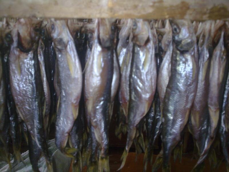 glmehnb Опубликовано 21 января, 2013 Жалоба Опубликовано 21 января, 2013 Ну как мелкая... Корюшка зубатка (он же сахалинка) до 30 см вырастает. Есть ещё малоротка - помельче будет. Есть ещё уёк - еще мельче. Есть ещё салатка (или салака х.з) та вообще 10 см максимум- жареная вкуснятина. Обваливаешь не потроша в подсолёной муке и во фритюр, никакие чипсы рядом не валялись. На фото - зубатка. Рядом с вяленой корюшкой никакой лещ не валялся. ИМХО. Цитата