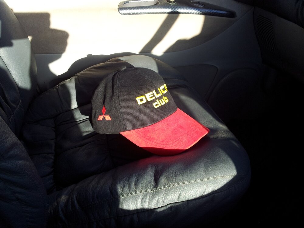 Красная кепка с права по диаганали с кепки на козырек в две строки DELICA CLUB жёлтым левее на кепке красный с белой окантовкой значёк мицубиси post-2889-0-20101100-1343718853_thumb.jpg