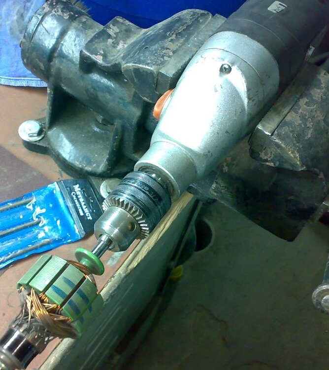 S.Т.А.L.К.Е.R. Опубликовано 16 апреля, 2014 Автор Жалоба Опубликовано 16 апреля, 2014 (изменено) 4. Подточили щеточки до нужного размера и формы. Далее в идеале зажимаем на концах проводов от щеток новые контакты и собираем все в обратном порядке. Но на практике такие контакты я не нашел, и длина проводков у щеток оказалась меньше родной, пришлось спаивать и обжимать медной жестью. Получилось коряво, но работоспособно Щетки свободно перемещаются, спайка им не мешает. Очистка и подготовка коллектора двигателя: 1. Закрепляем ротор двигателя в дрель. 2. Окрашиваем коллектор маркером,особенно прокрашиваем выработку и канавки. 3. Далее вращая ротор дрелью, используем мелкий, плоский и широкий напильник (или наждачную бумагу на плоской поверхности) и аккуратно, не усердствуя, равномерно стачиваем коллектор до той степени, пока весь маркер не сотрется (устранятся все канавки). Таким образом мы получаем ровный коллектор по всей окружности. 4. Не забываем прочистить канавки между ламелями. Остается только отполировать коллектор используя ту же дрель и например кусок кожи. Изменено 16 апреля, 2014 пользователем S.Т.А.L.К.Е.R. Цитата
