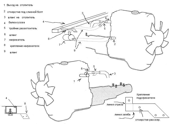 tpavel Опубликовано 1 декабря, 2005 Жалоба Опубликовано 1 декабря, 2005 Кто какой вариант установки предпускового подогревателя выбрал? Интересует месторасположения самого "котелка", сброс/забор ОЖ, ну и дополнительные фишки: например одновременный подогрев ДТ или ТФ от циркулирующей ОЖ (почему бы и нет?). Так же приветствуется информация - "котелки" каких производителей используете, а может кто-то сам сваял - так поделитесь опытом. Спасибо заранее всем. (Добавление) У меня - стоит тюменский на 2 кВт, прикреплен у передней стенки топливного бака, за подножкой салонной двери. Забор ОЖ (длинный шланг) - со сливной пробки, сброс подогретой - в тройник на шланге с печки (входит в заднюю верхнюю часть ГБЦ). С -30 нагревает до "наощюпь теплой клапанной крышки" за 25 минут. После старта, указатель т-ры ОЖ - на второй метке. Однажды стояночники не отключили вовремя, грелась почти 3 часа - указатель т-ры после пуска встал на середине шкалы. Минусы установки - длинные шланги. Также, пришлось выкрутить термореле - т.к. непродавливая жидкость щелкало включаясь и выключаясь... Рассказывайте о своем опыте... Цитата