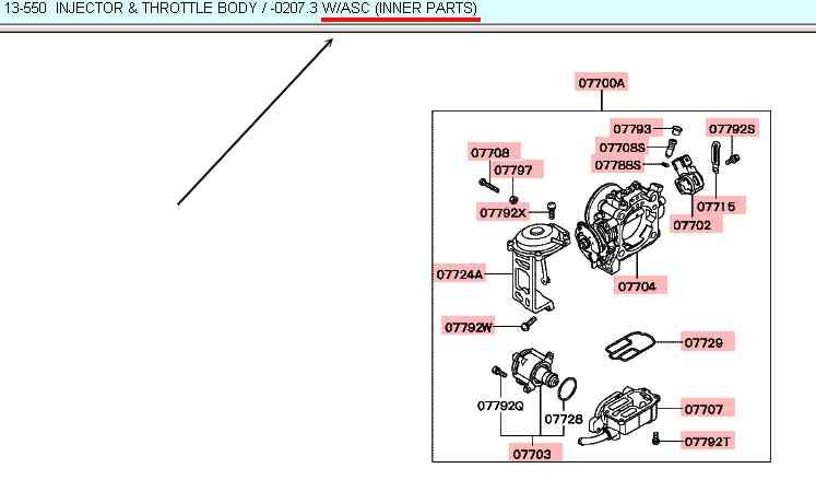 Ещё один нюанс. Если ты теперь попробуешь на этой схеме для номера кузова вопрошающего ткнуть, например, в деталь 07724A, то получишь "нет данных". Т.е. рисунки в капсе (ASA) у всех одинаковые и крыши ты можешь найти какие угодно: с люками и без, другое дело что для конкретного номера кузова те детали, которые не ставились не будут пробиваться! Так и тут. Толку от того, что ты привёл скрин? Именно с этого листа по кузову PD6W 0002659 бьётся только вся дроссельная заслонка в сборе (07700A, MD199356), 07724A не бьётся. По моему номеру бьётся - проверь.